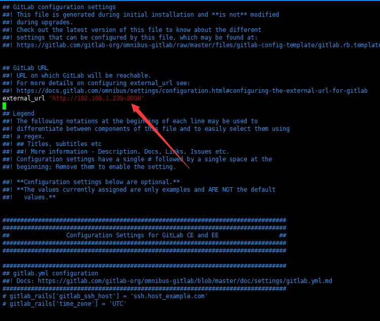 vim /etc/gitlab/gitlab.rb , 修改Gitlab地址及端口
