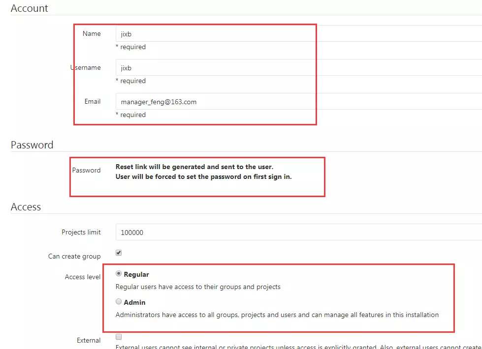 填写用户信息,用户邮箱一定要正确,需要去邮箱重置密码,设置用户权限