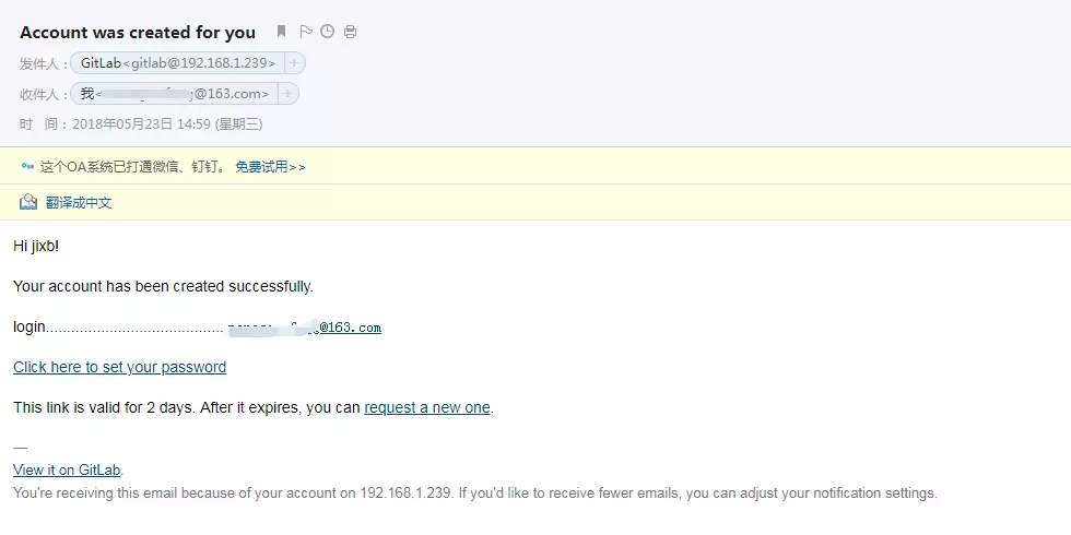 登录邮箱重置密码,邮件配置成功,新建用户成功