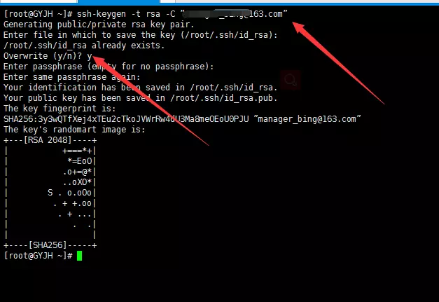 回到xshell 输入命令:ssh-keygen -t rsa -C ”邮箱地址”
