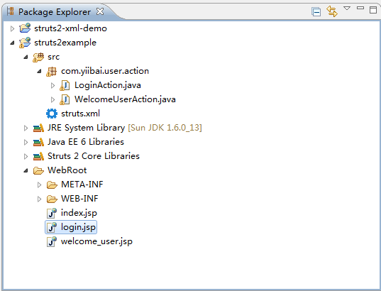 <package name="user" namespace="/User" extends="struts-default"> <action name="Welcome" class="com.yiibai.user.action.WelcomeUserAction"> <result name="SUCCESS">/welcome_user.jsp</result> </action> </package>