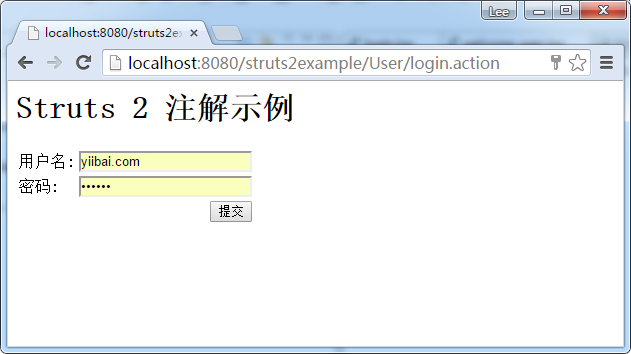 <%@ page contentType="text/html; charset=UTF-8"%> <%@ taglib prefix="s" uri="/struts-tags"%> <html> <head></head> <body> <h1>Struts 2 注解示例</h1> <s:form action="Welcome"> <s:textfield name="username" label="用户名" /> <s:password name="password" label="密码" /> <s:submit value="提交"/> </s:form> </body> </html>