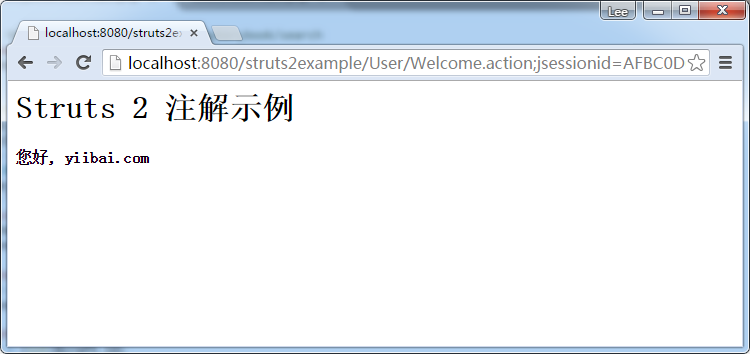 提交到 http://localhost:8080/Struts2Example/User/Welcome.action 后显示: