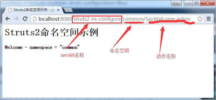 看下面的一张图来了解一个URL匹配Struts 2的动作命名空间。