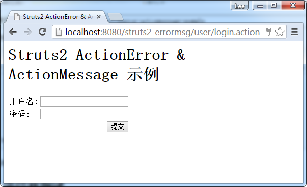 <h1>Struts 2 ActionError & ActionMessage示例</h1>