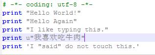 在脚本中加语言编码声明 “-*- coding: uft-8 -*-”