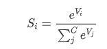 其中Vi表示分类器的输出,i表示类别索引,总的类别个数为C,Si表示当前元素的指数与所有元素指数和的比值。概括来说,SoftMax函数将多分类的输出值按比例转化为相对概率,使输出更容易理解和比较。