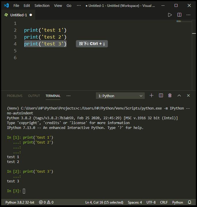 然后,就可以做到,按下 Ctrl+;,直接发送选中行,到 IPython Kernel 了!