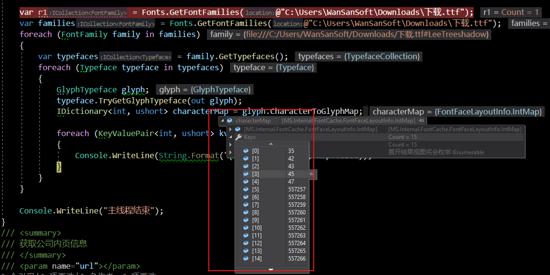 我需要拿到这些映射关系,才能解析对应数字。所以我百度搜索C# 读取ttf文件的unicode但是没有找到答案。直到用google搜索“C# read ttf unicode”,找到了一个能解决我的问题的回答。https://stackoverflow.com/questions/1439551/get-supported-characters-of-a-font-in-c-sharp
