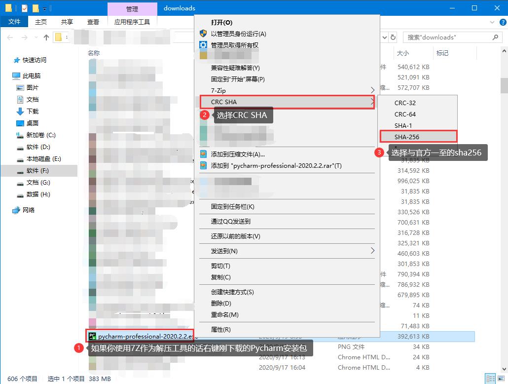 如果你机器中有7z这个压缩工具的话那么你可以右键安装包操作如下,如果没有那就下载个SHA256工具