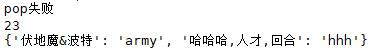 dd = bb.pop('人才/可怕','pop失败') #pop成功,且删除该键对应的键值对