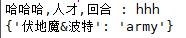 bb={'人才/可怕':23,'伏地魔&波特':'army','哈哈哈,人才,回合':'hhh'}