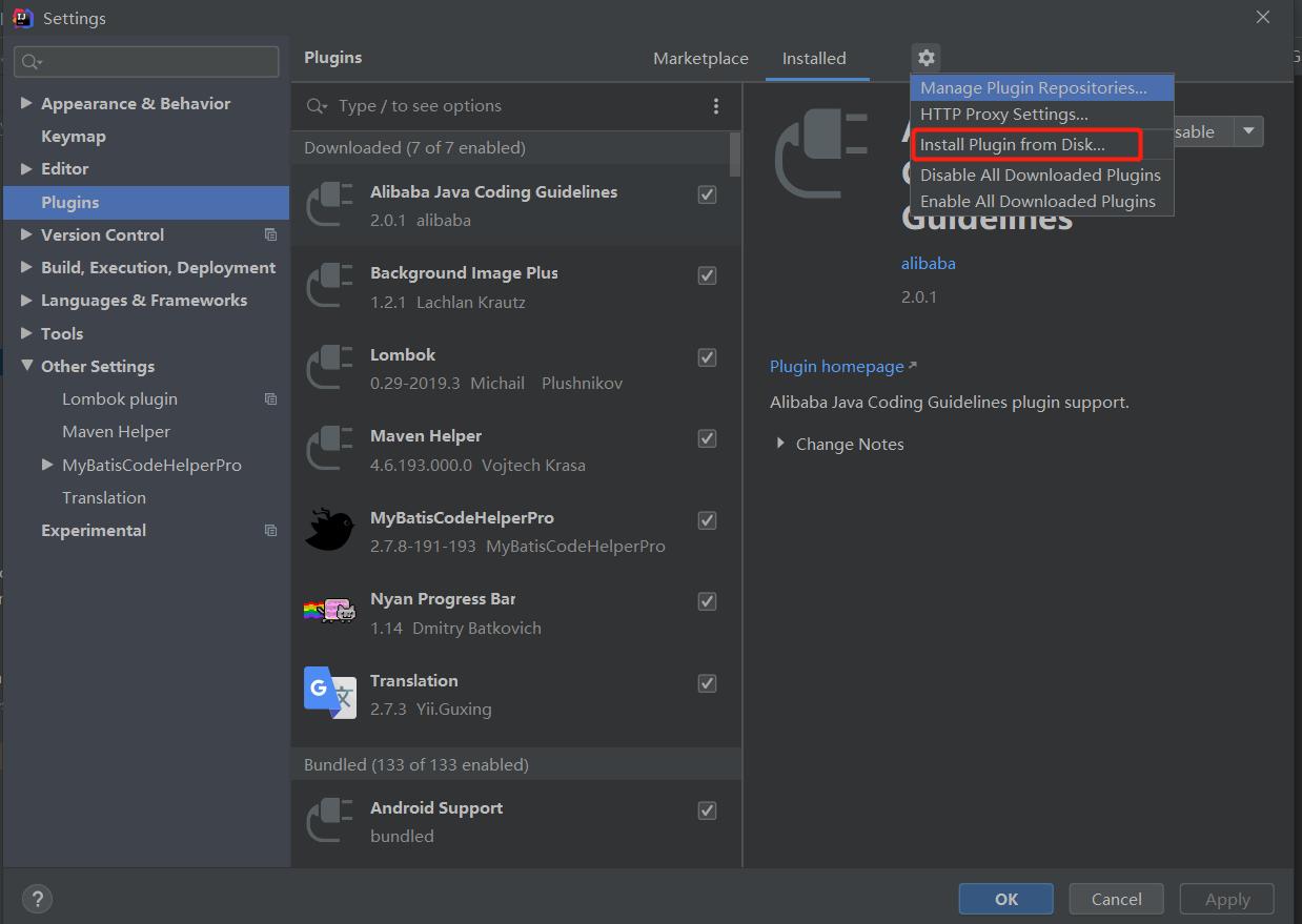 下载MyBatisCodeHelper-Pro插件包到本地,在IDEA中安装此插件