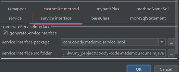 点击MyBatis generator,弹出生成代码窗口