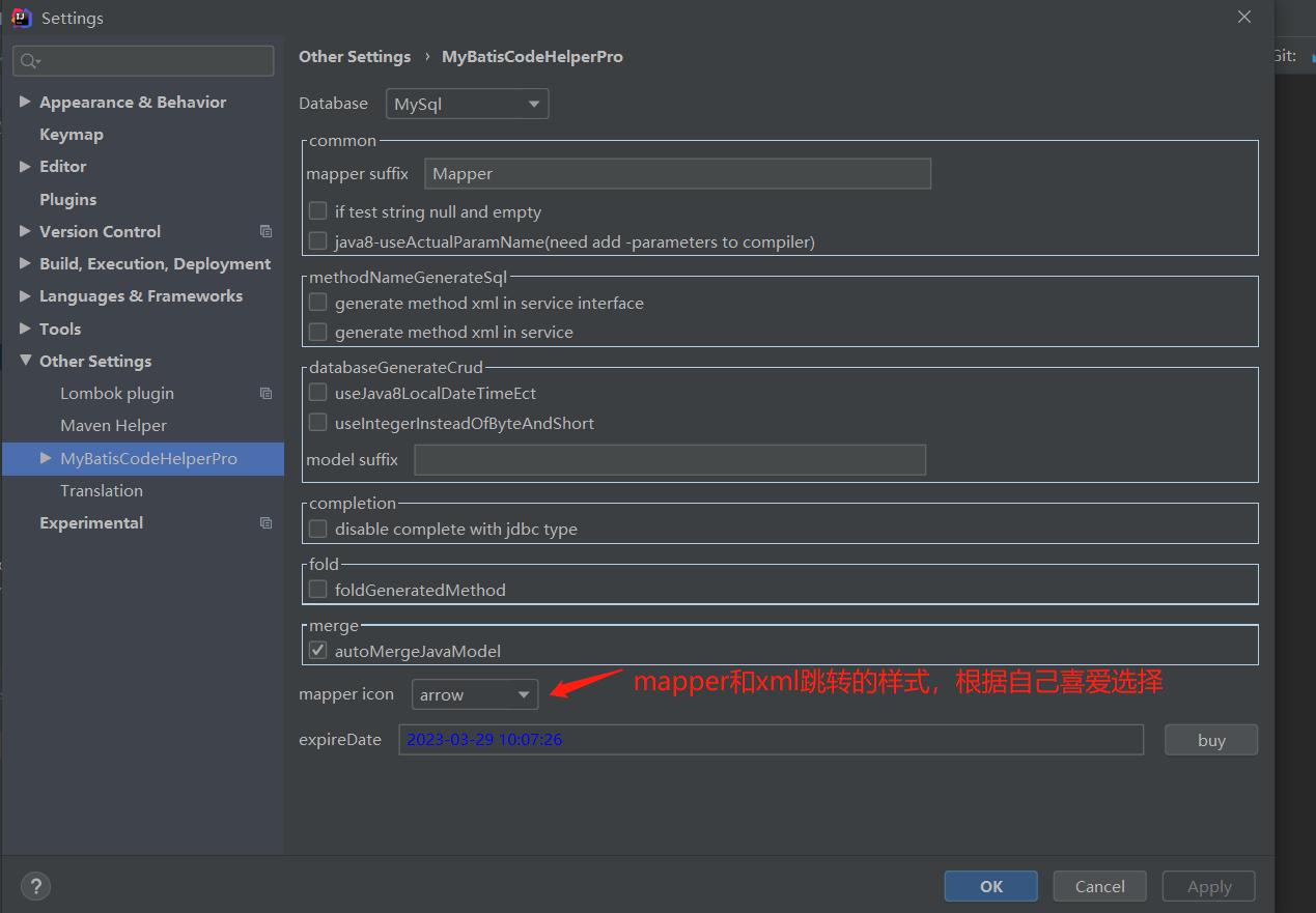 重启IDEA即可,另外可以设置MyBatisCodeHelper-Pro插件属性