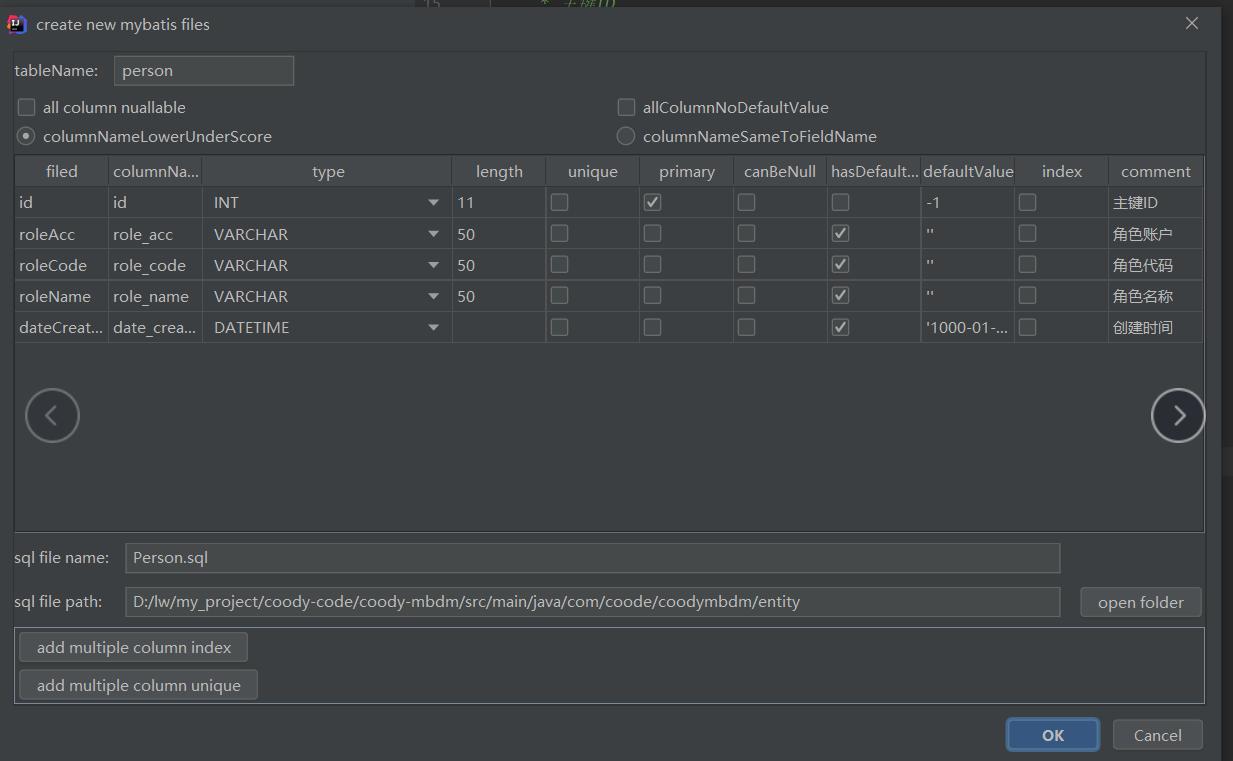 点击OK,代码即生成,根据需要做对应的修改即可