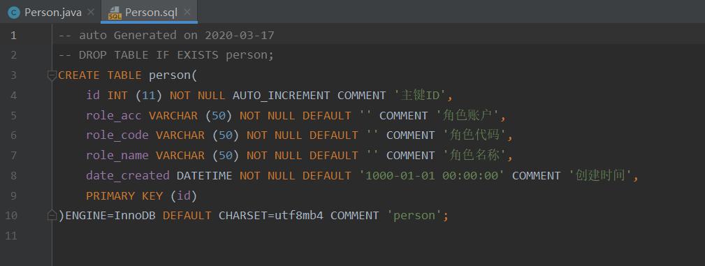 1.实体类自动生成建表语句创建实体类Person