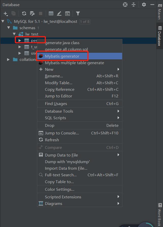 2.表创建后,生成bean、mapper、mapper.xml打开IDEA,Database窗口