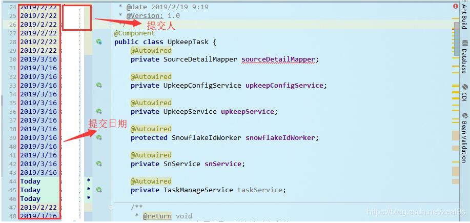 查看每一行是由谁何时提交的(追责到每一行代码时有巨大用)