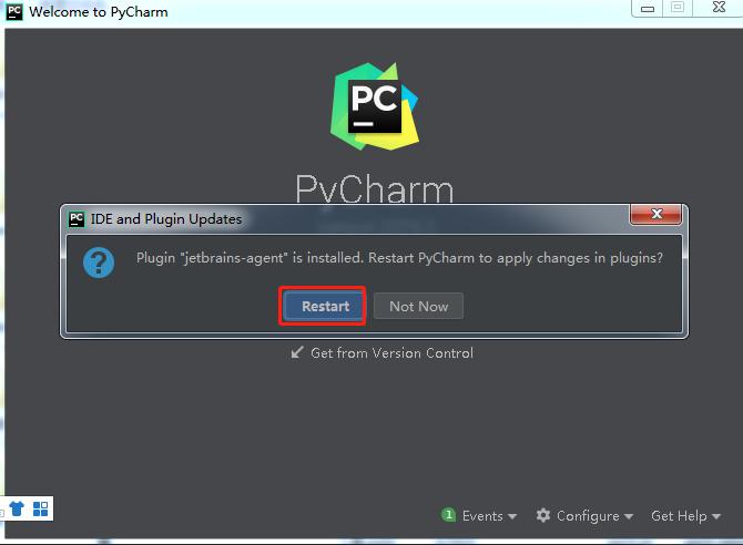 2. 将 jetbrains-agent-latest.zip拖进下面IDE窗口,点 "Restart" 按钮重启IDE。