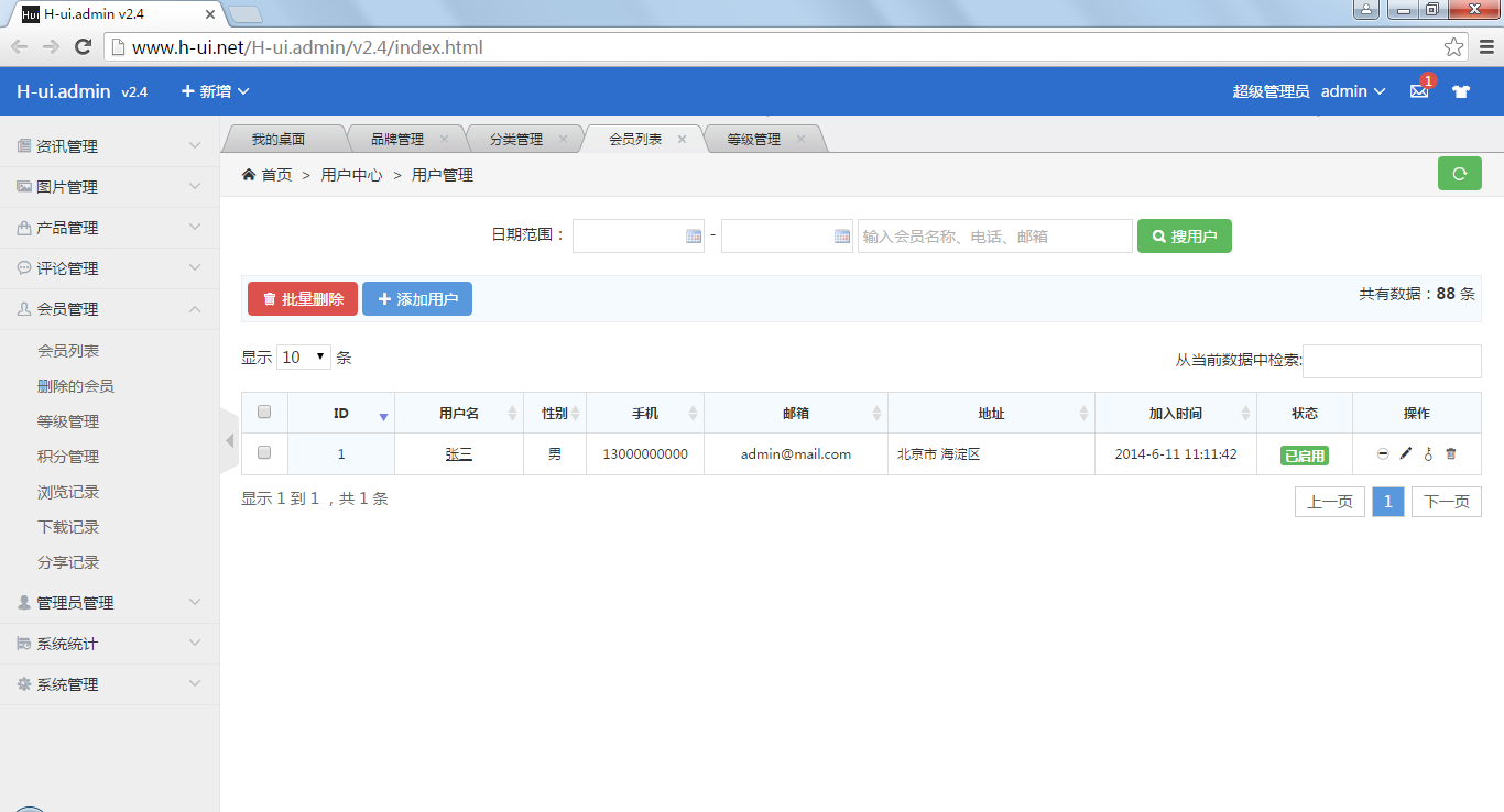 官网:http://www.h-ui.net/H-ui.admin.shtml 后台,http://www.h-ui.net/ 前台