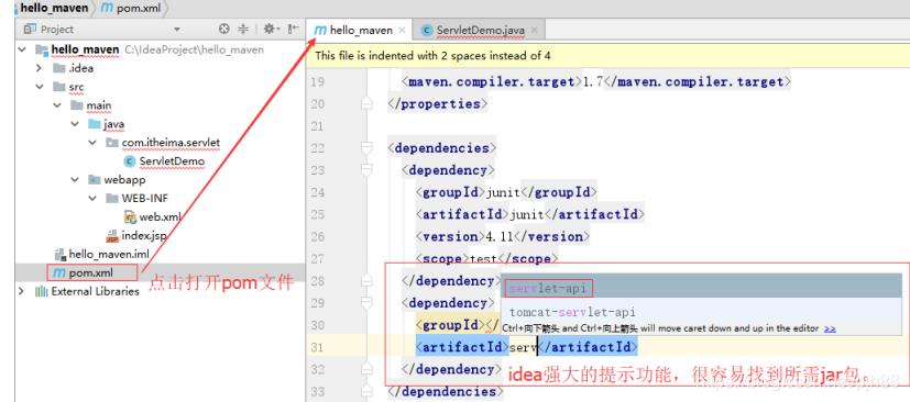 Maven的核心功能是合理叙述项目间的依赖关系,通俗点 就是通过pom.xml文件的配置获取jar包不用手动的去添加jar包,,这个pom.xml包我后面会叙述,不过已经学习过maven的 人应该对这个很熟悉。其本质就是通过配置pom.xml来获取jar包,当然这是在该项目必须是maven项目的前提下。那么什么是maven项目