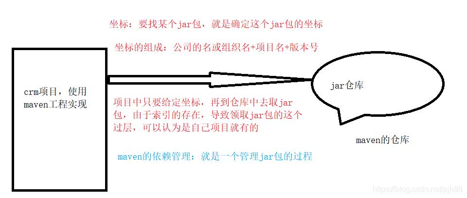 通过 pom.xml 文件配置要引入的 jar 包的坐标,再读取坐标并到仓库中加载 jar 包,这