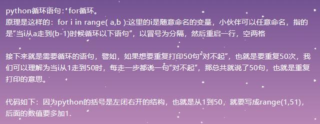 因为这两句代码已经不是循环体的内容了,所以无需另起一行空两个,而且,小伙伴记得噢,所有字符都是英文字符,包括括号、引号等等。