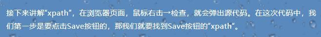 这块区域就是Save按钮对应的源代码→鼠标移动到该源代码区域→右击→复制→复制XPath,