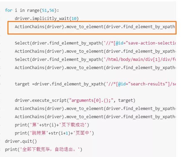 最后,因为以上均是循环体的内容,当代码执行完整个循环体了,我们可以通过代码直接关掉浏览器,提醒我们打印完了,代码如下