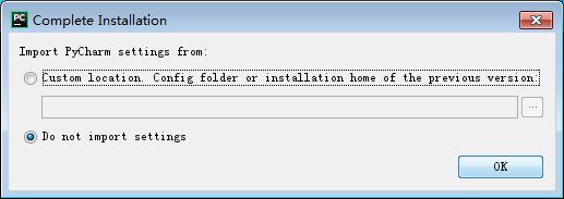 从哪里导入pycharm设置,直接第三个(Do not import settings),以后还可以导入。选择Do not import settings,之后选择OK,进入下一步。