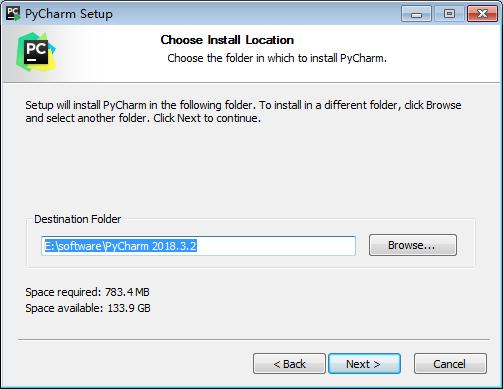 第三步:选择安装目录,Pycharm需要的内存较多,建议将其安装在D盘或者E盘,不建议放在系统盘C盘: