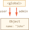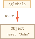 这里箭头表示一个对象引用。全局变量“user”引用对象{name:“John”}(为了简洁起见,我们将其命名为John)。John 的“name”属性存储一个基本类型,因此它被绘制在对象中。