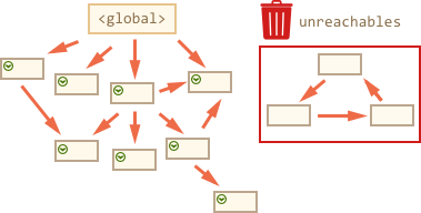这就是垃圾收集的工作原理。JavaScript引擎应用了许多优化,使其运行得更快,并且不影响执行。
