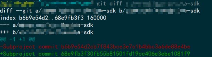 正常情况下,修改子仓库的内容并在子仓库提交后会在父仓库执行 git diff会有如下输出