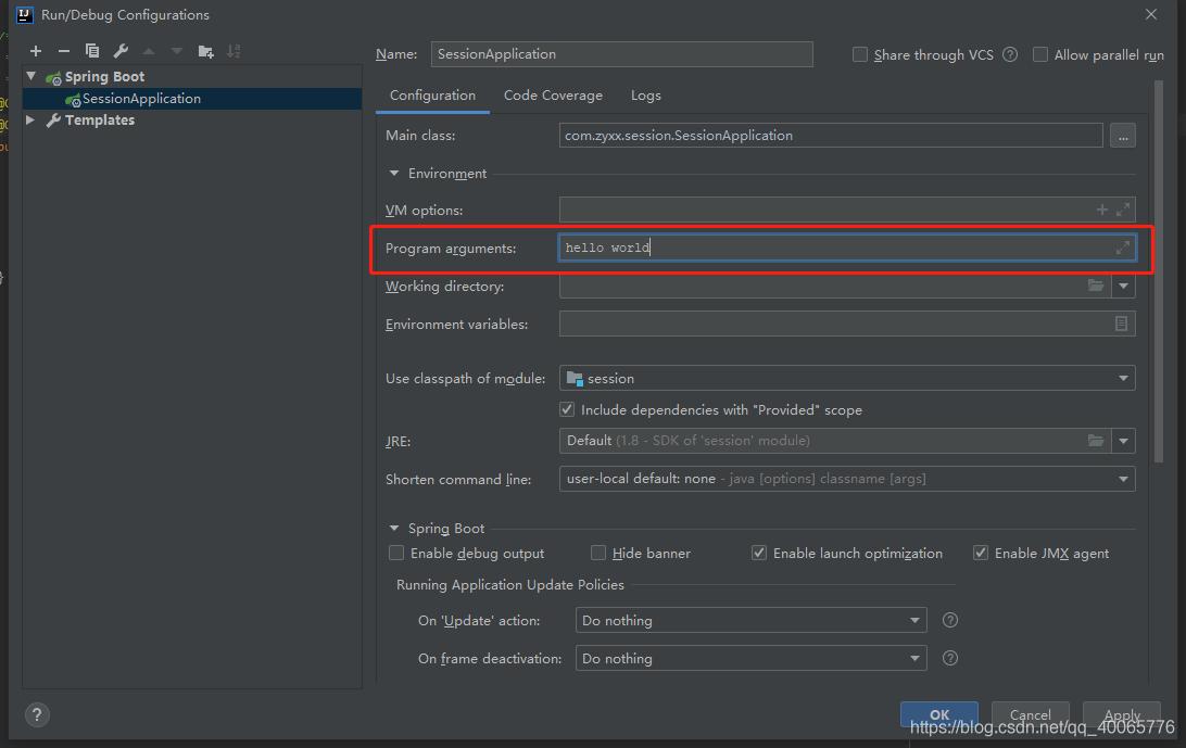 ApplicationRunner 与 CommandLineRunner 的用法基本一致,只是接收的参数不一样,可以接收 key-value 形式的参数,如下: