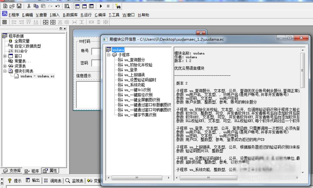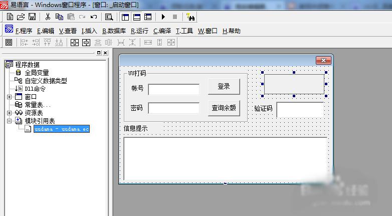 6、接下来我们自己新一个易语言windows窗口程序,添加一些必要组件,如下图示!同时添加UU云的打码模块