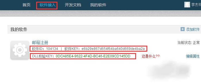 7、接下就是要在软件上登录UU云的帐号了,根据说明,在登录前,需要对开发者的帐号进行验证,可以在“软件接入”添加自己的软件说明,然后就自动生成ID、KEY、DLL校验KEY!