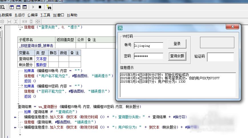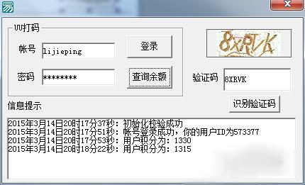 11、为这个图片框添一个验证码,为了更好演示, 这里现添加一个按钮,用于识别验证码,添加下面的代码即可!演示一下,成功了,扣了15积分!