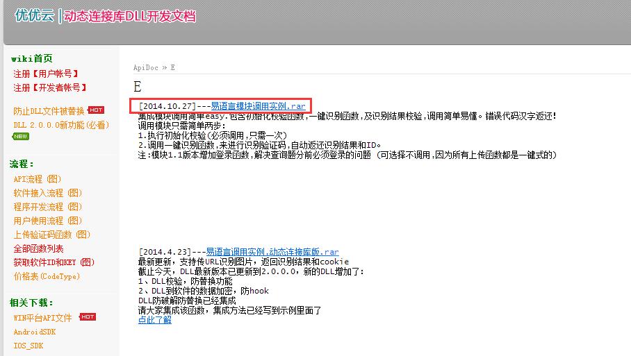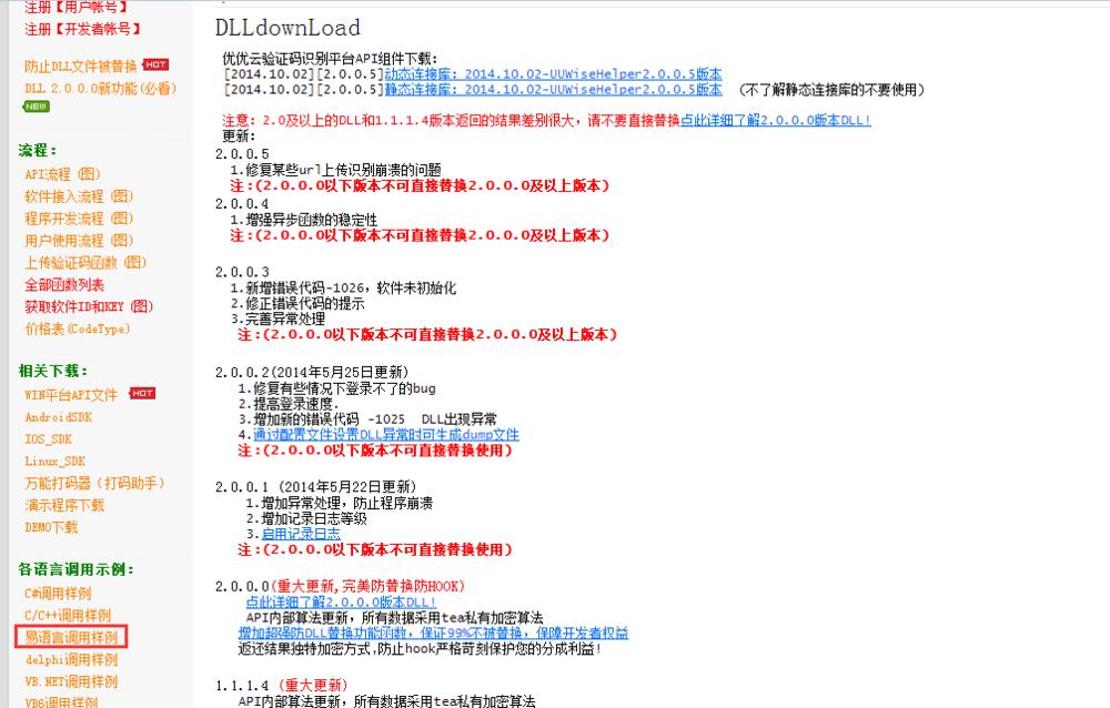 3、然后点进API下载,选用动态链接库,在这里更是有很多的说明,还有各种编程序语言调用的例子!