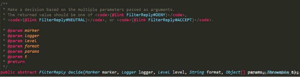 对于TurboFilter而言,需不需要记录日志,取决于ch.qos.logback.classic.turbo.TurboFilter#decide方法的返回: