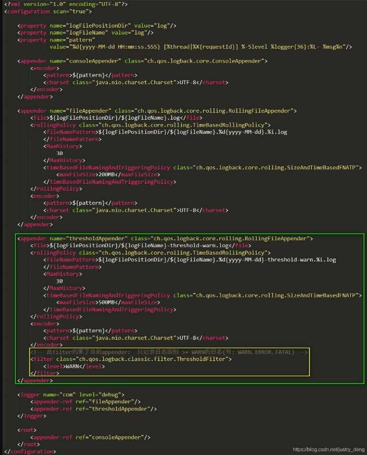 | ThresholdFilter | Filter | 对大于或等于指定level的日志进行记录(或不记录),对小于指定level的日志不记录(或进行记录) 提示:info级别是大于debug的 |