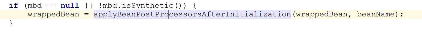 也是一个 BeanPostProcessor 接口的运用, 在这里会返回 bean 的代理实例, 这个就是 AOP 的入口。