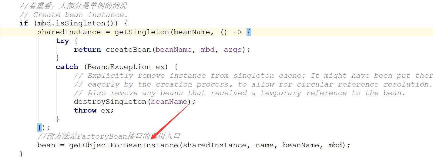 在实例化和 IOC/DI 做完后, 就会调用 FactoryBean 类型的接口, 如果要获取到FactoryBean 类本身, 就必须加上”&”符号, 比如beanFactory.getBean(“&beanName” )。