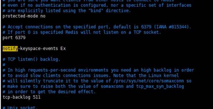 2、打开redis服务的配置文件添加notify-keyspace-events Ex 如果是注释了,就取消注释