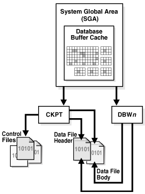 CKPT 是检查点过程。 在Oracle中,磁盘上的数据称为块,内存中的数据称为缓冲区。 当该块写入缓冲区并更改时,缓冲区变脏,需要将其写入磁盘。CKPT进程使用检查点信息更新控制和数据文件头,并向脏盘写入脏缓冲区的信号。 请注意,Oracle 12c允许全面和增量检查点。