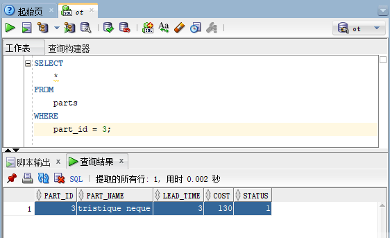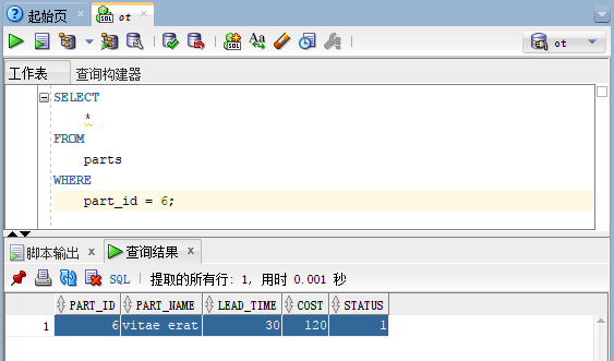 以下语句更新ID为6的零件的前置时间,成本和状态。