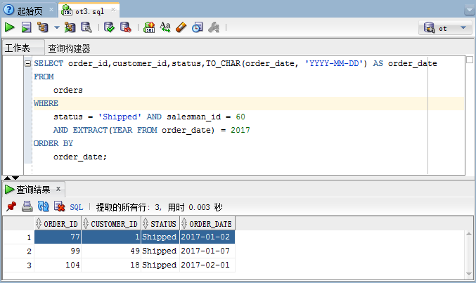 在这个例子中,查询返回了满足两个表达式的所有订单信息,即: