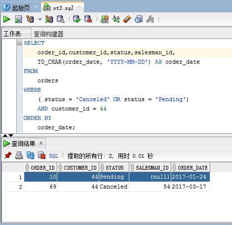 在这个例子中,语句返回了满足下列表达式之一的所有订单: