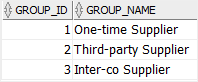 supplier_groups表存储供应商组,例如一次性供应商,第三方供应商和跨公司供应商。 每个供应商组可能有零个,一个或多个供应商。